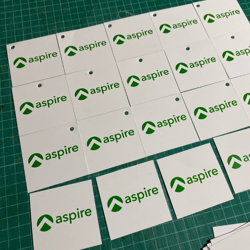 A small piece of material attached to something for identification or decoration.